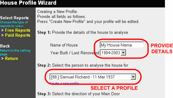 • Step 3: Ignore this selection for Good House Report as you do not know what is your main door direction.